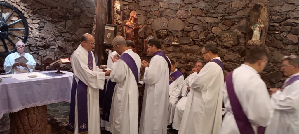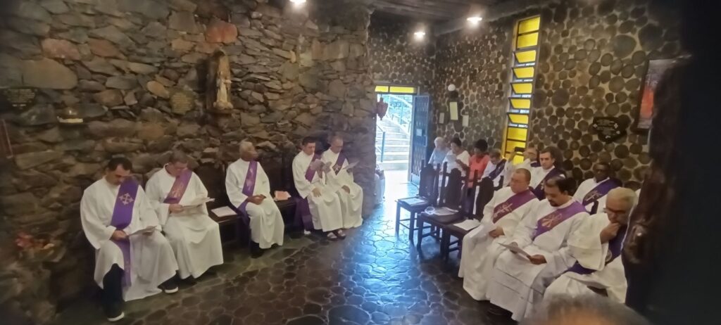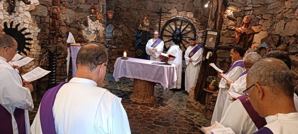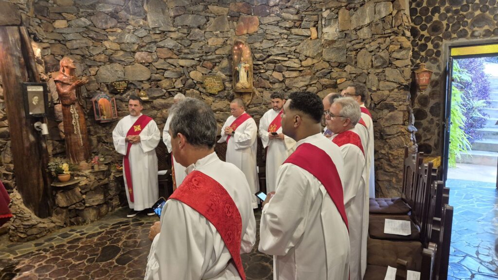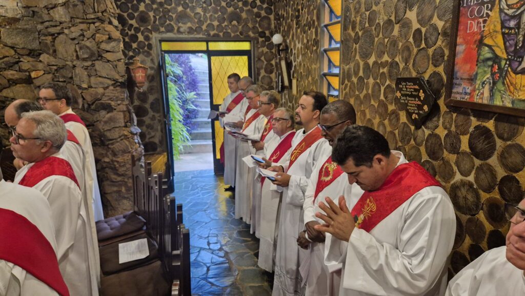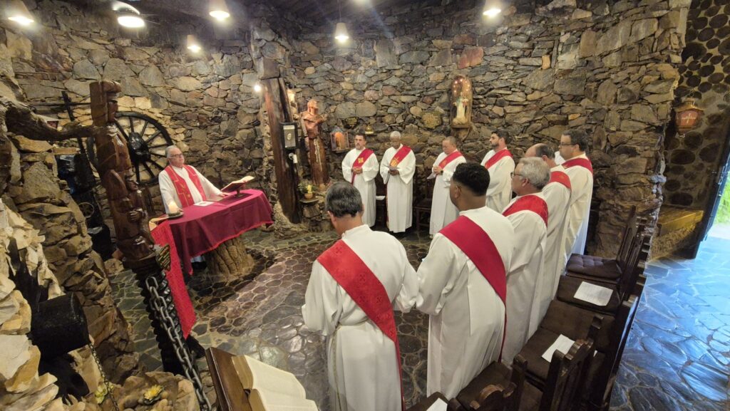 Entre as colocações do pregador os diáconos foram convidados a momentos de silêncio e deserto interior. E também rezaram as orações da Liturgia das Horas, momento mariano e Santa Missa.